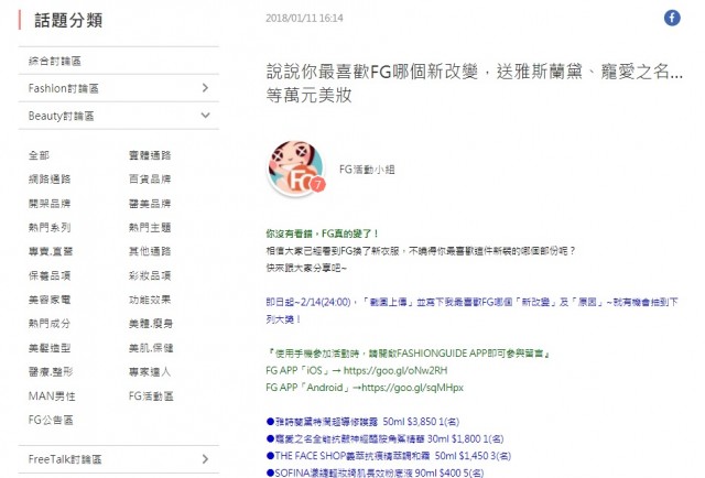 中獎名單公佈/說說你最喜歡FG哪個新改變,送雅斯蘭黛、寵愛之名…等萬元美妝