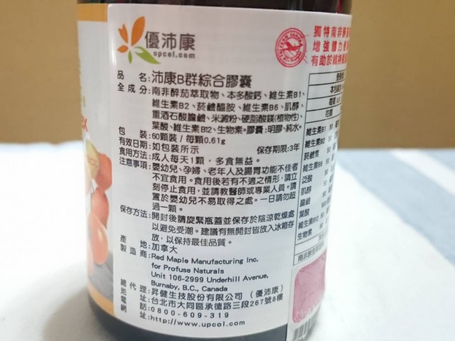 不過優沛康的B群不會,雖然他也還是有那股味道