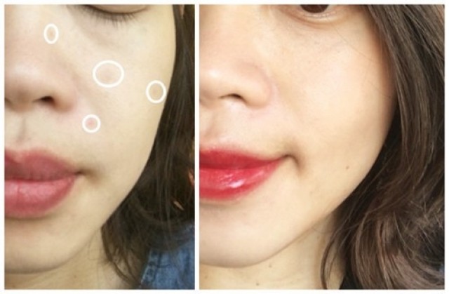 可以明顯看到臉色比較暗,鼻翼兩側也比較紅,還有痘痘和斑