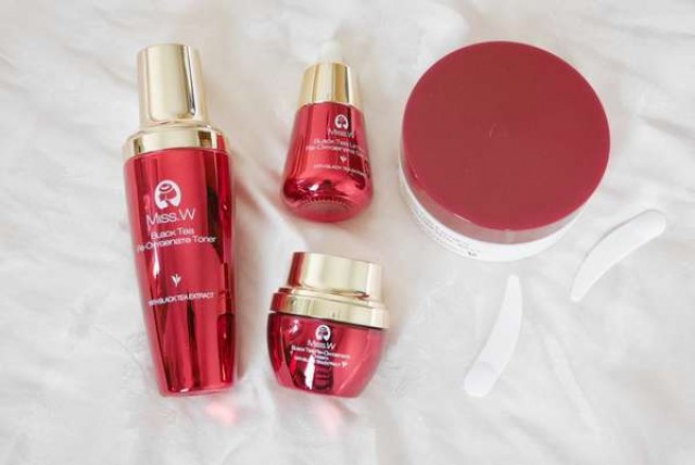 玫瑰聖代 2018-05-19 15:26:38 Miss.W 紅茶系列保養品 Miss.W 紅茶系列添加了頂級阿薩姆紅茶萃取,紅茶多酚能淡化肌膚暗沈、抗氧化、幫助肌膚修護、使肌膚恢復水嫩光澤,並且有淡淡的紅茶香氣,聞起來很舒服。紅茶白晶活氧化妝水、紅茶緊緻活氧精萃、紅茶極效活氧水凝霜、紅茶原葉瞬效活氧凍膜都很好用。