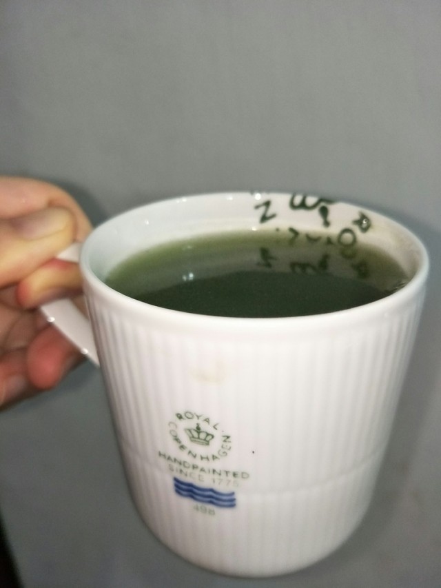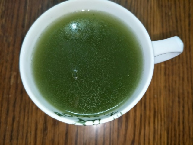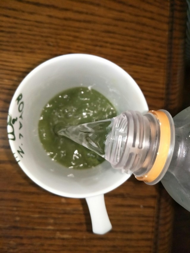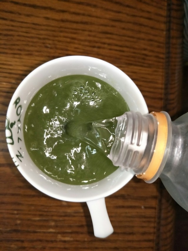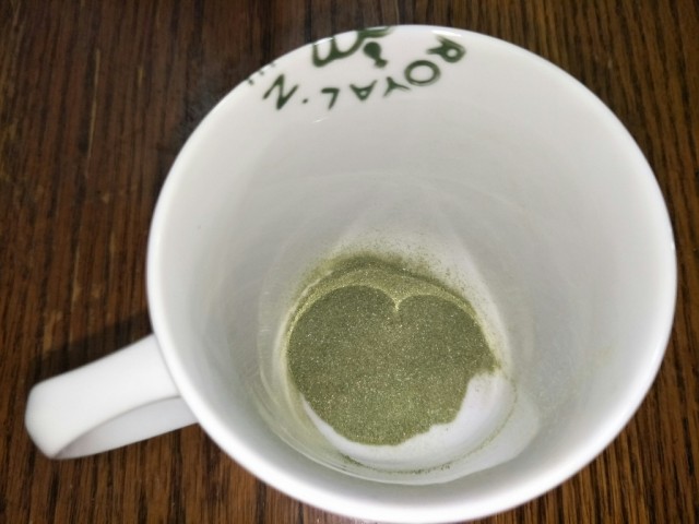 華麗纖果青汁是乾燥的綠色粉末~遇水很快就溶解啦!!!!