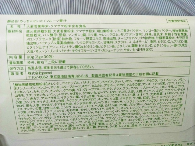 華麗纖果青汁裡面含有滿滿的由佳果+乳酸菌&豐富的美容成分: 胎盤素/ 玻尿酸/ 神經醯胺