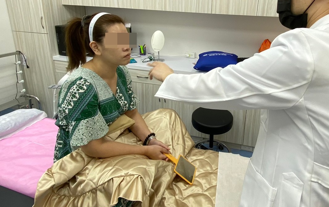然後下圖這是做完右半臉 (照片中⬅邊)立刻請女兒拍的