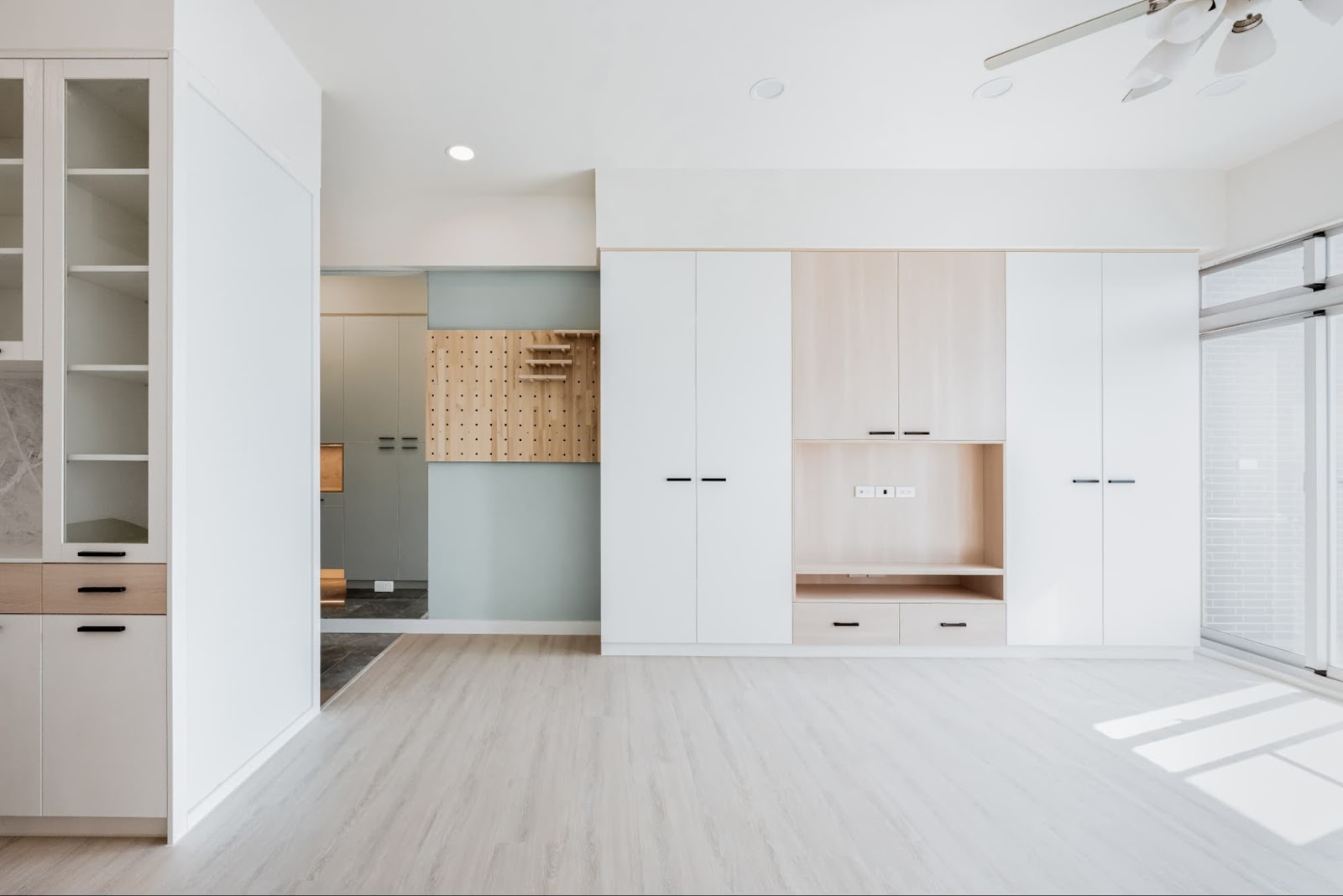 如果需要,我們甚至可以略去系統櫃工程,雖然有些局部畸零的空間,還是需要能客製化的系統櫃來填補就是了。