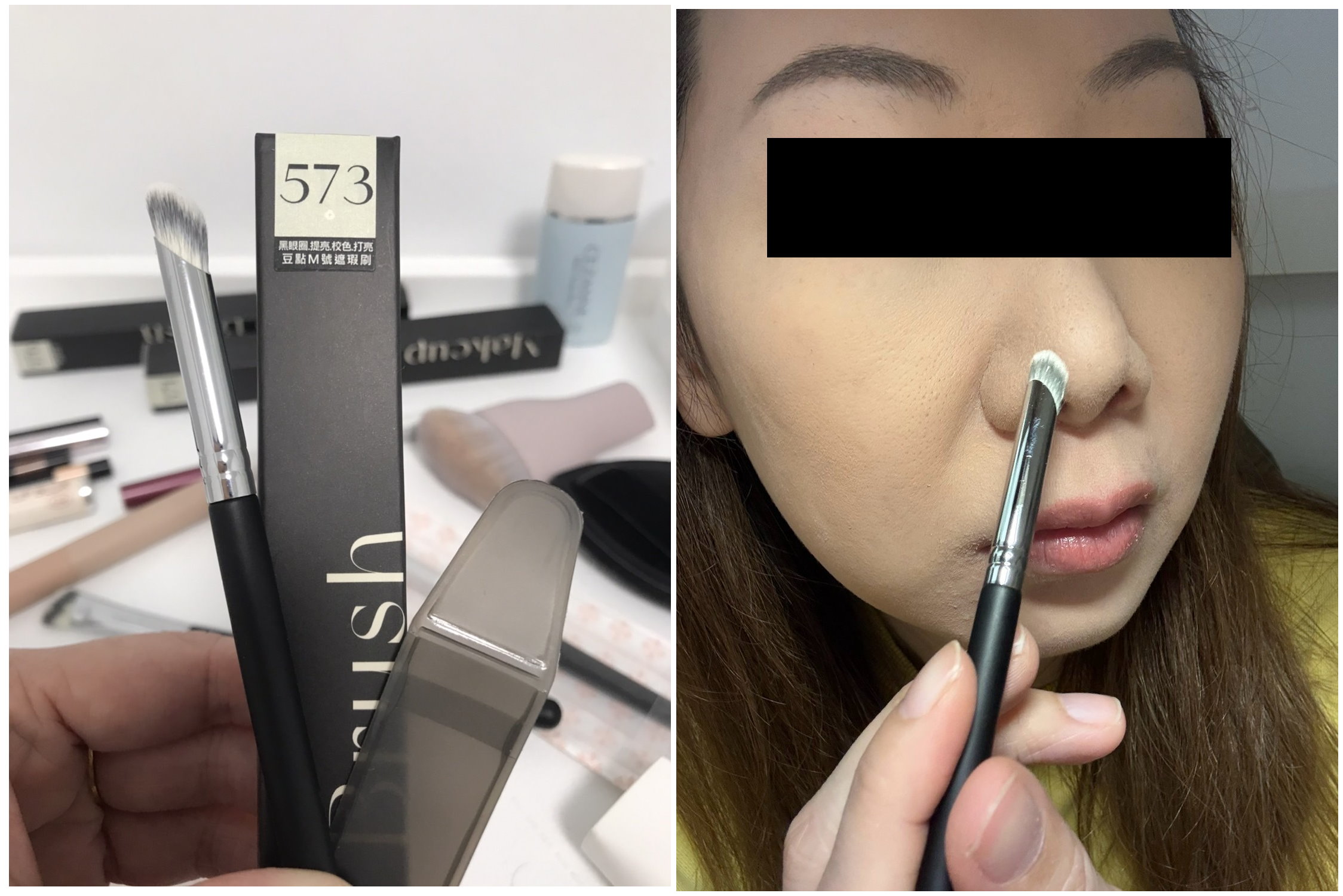 它其實就是再小一號的573,但它能處理的部份更細小的遮瑕,可以定點集中臉上的小斑點、痘痘,遮掉這些惱人的小煩惱,一樣是沾取遮瑕或粉底類的產品輕輕點拍,細節控的人一定很愛,然後它也能當成眼下提亮刷,沾點打亮餅、打亮棒輕掃臥蠶,妝感看起來自然又浮貼。