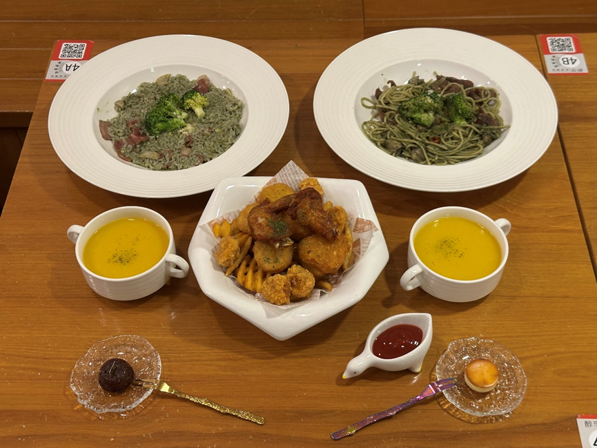 附餐甜點那天是手作布朗尼球和原味乳酪球,布朗尼外層微脆、內心濃郁不甜膩,乳酪球則是入口即化,奶香十足,真的是完美的Ending~而且我們還忍不住加點了一份炸物拼盤,內容超豐富,有脆薯、雞翅、雞球、雞塊…每一樣都炸得金黃酥脆,油度剛好不膩口,邊聊天邊配著吃,完全就是嘴饞時最療癒的組合!