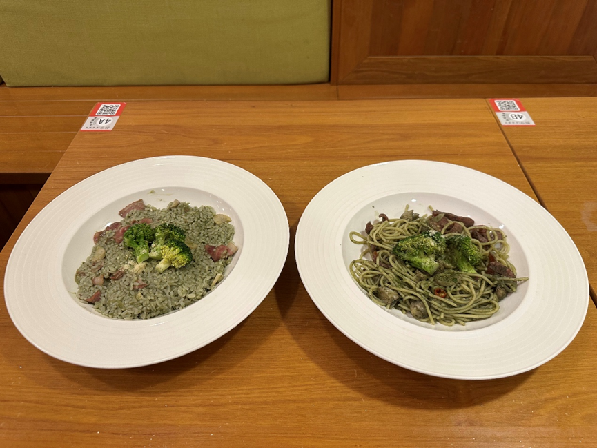 朋友則是選了經典青醬德腸義大利麵,德腸飽滿多汁、青醬依然表現亮眼,我們兩個吃到最後都忍不住搶彼此的餐😆