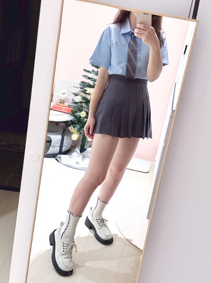 後來發現學院風真的超好搞,隨便抓件襯衫+百褶裙,再搭條領帶就瞬間搞定!
