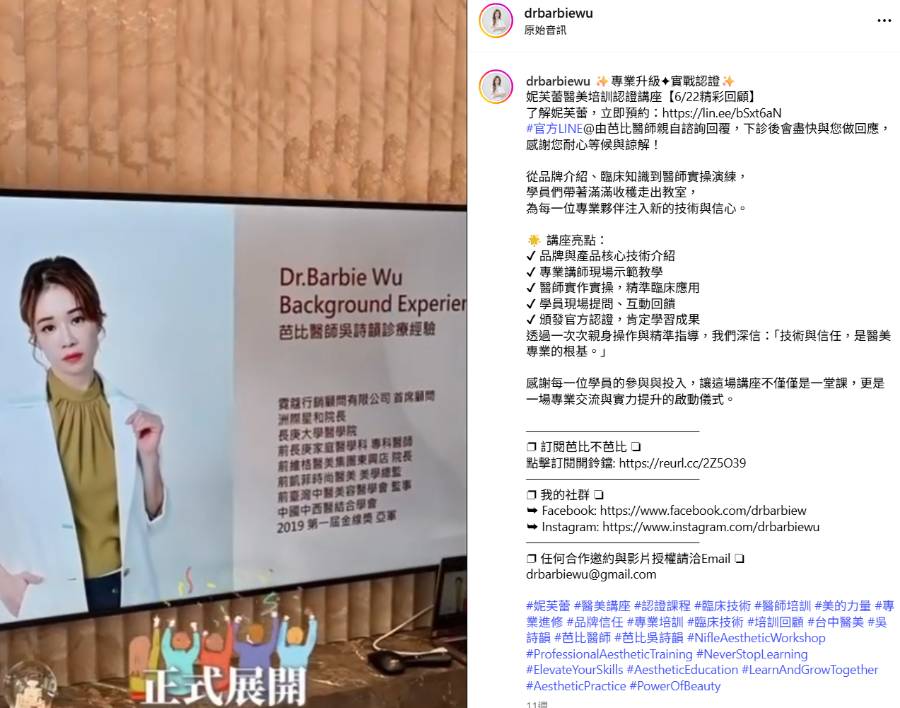 平時追蹤的芭比醫師剛好介紹這個妮芙蕾填充,具有刺激膠原蛋白增生的功效,效果更持久,但是填充療程很看醫師的技術,查了一下芭比醫師是原廠的認證講師,有課程都會邀請她到現場替新手醫師進行示範,如何打得比較自然不會有過度醫美感覺~