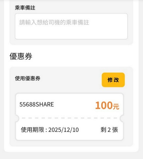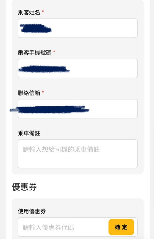 還有記得寫上你的姓名、電話、信箱,如果有什麼需要請司機注意的,也都可以打在備註上面