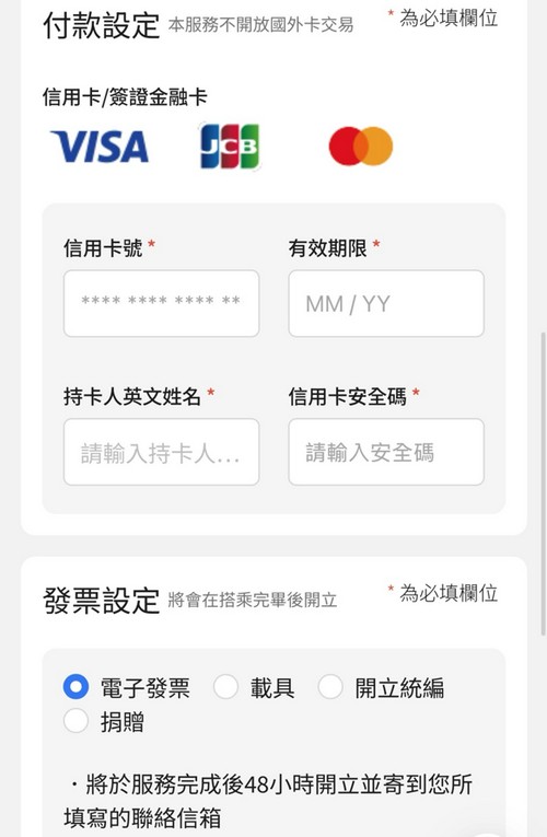 確認資料都沒問題之後就可以付費了,他們可以用信用卡付費,整個過程不到兩分鐘,價格也很明確,還有如果刷永豐和55688聯名卡,就會有新戶限定滿額禮,消費滿額送機場接送2趟,也超划算的