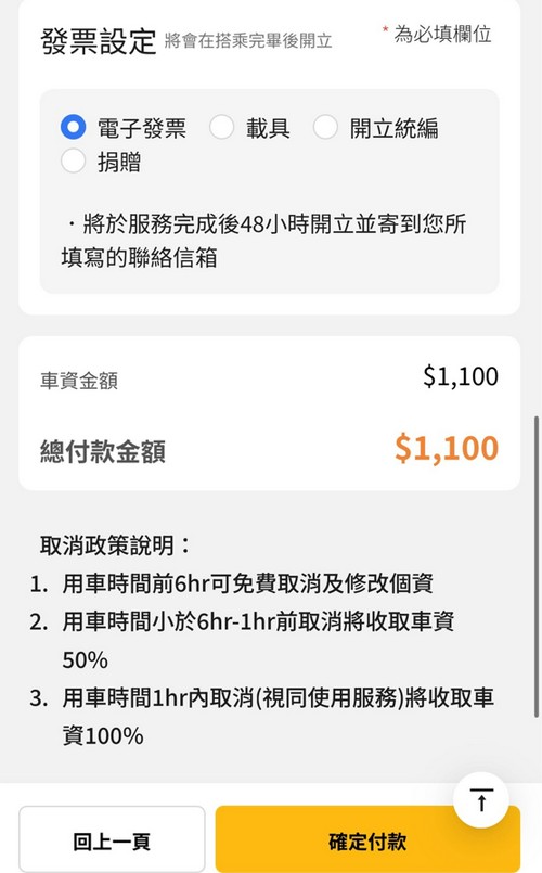 接著只要設定是要電子發票、載具、統編後就可以按確定付款了,不過也要提醒如果要取消或修改資料的話,它也有一些注意事項,記得要仔細看一下喔
