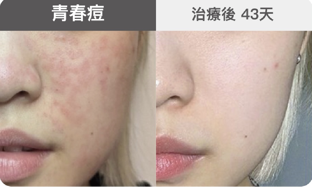 最讓我驚喜的是效果!術後第43天回看照片,真的差很多原本紅紅的痘痘淡了、膚色變得均勻,生理期前也不再大爆發,頂多冒一兩顆很快就退。