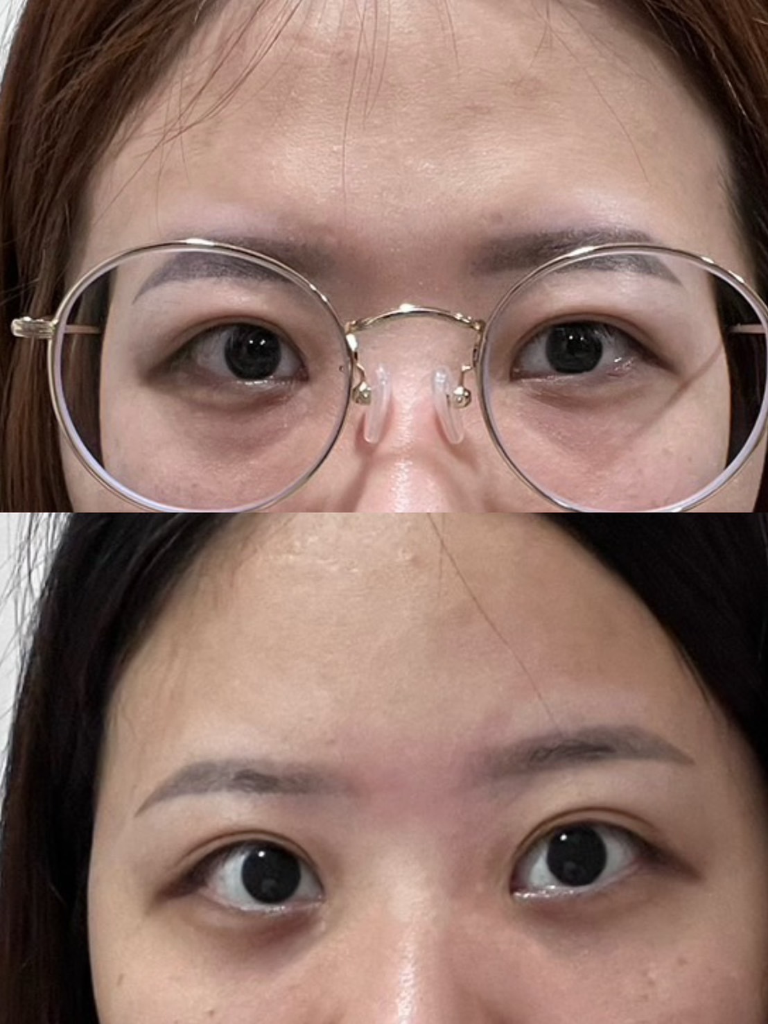 本來的眉毛跟眼睛的距離真的太近,很明顯的眉壓眼