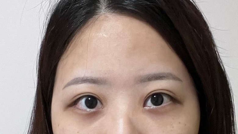 眼下還有點小浮腫跟一點瘀青還沒全消,但是雙眼皮更明顯了,眉壓眼已然消失