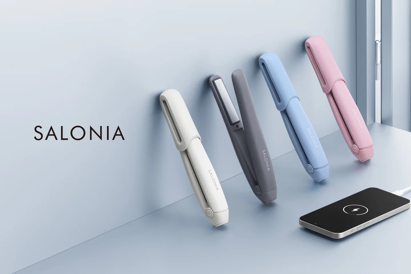 SALONIA 髮夾系列自 2012 年上市以來,累計銷售量已突破 1,900 萬支,更是深受日本消費者好評的長銷商品。此外,SALONIA 於自家社群媒體(SNS)進行問卷調查,針對「想要無線離子夾嗎?」的提問,累計收到超過 14 萬筆肯定回覆。因應市場規模擴大與消費者期待,SALONIA推出了搭載「行動電源功能」的無線離子夾,讓民眾在出門在外的緊急時刻也能方便使用。